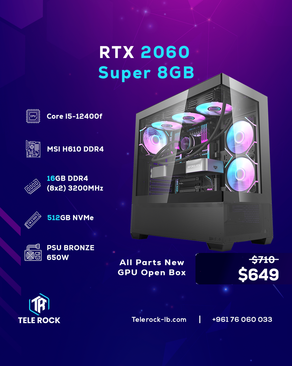 • Power Supply: 650W 80+ Bronze – New