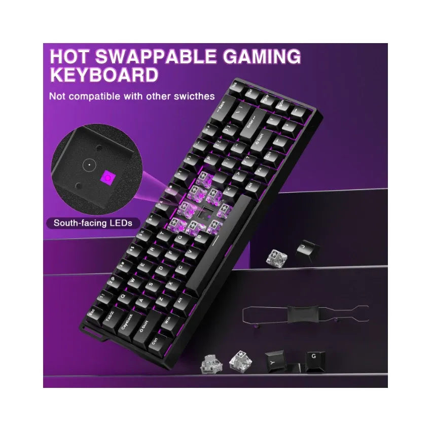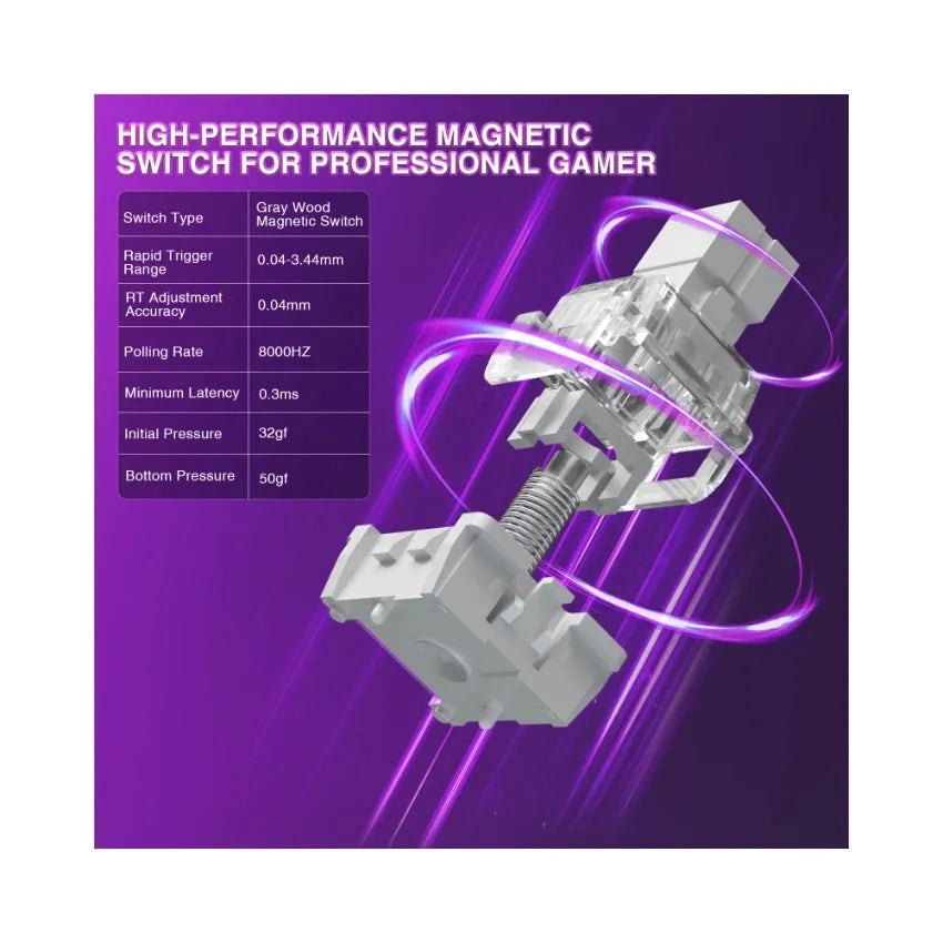 Compact 68-key mechanical keyboard with Hall Effect magnetic switches, vibrant RGB lighting, adjustable actuation (0.01–3.4 mm), and ultra-fast 8000 Hz polling. Built for serious gaming and smooth typing.